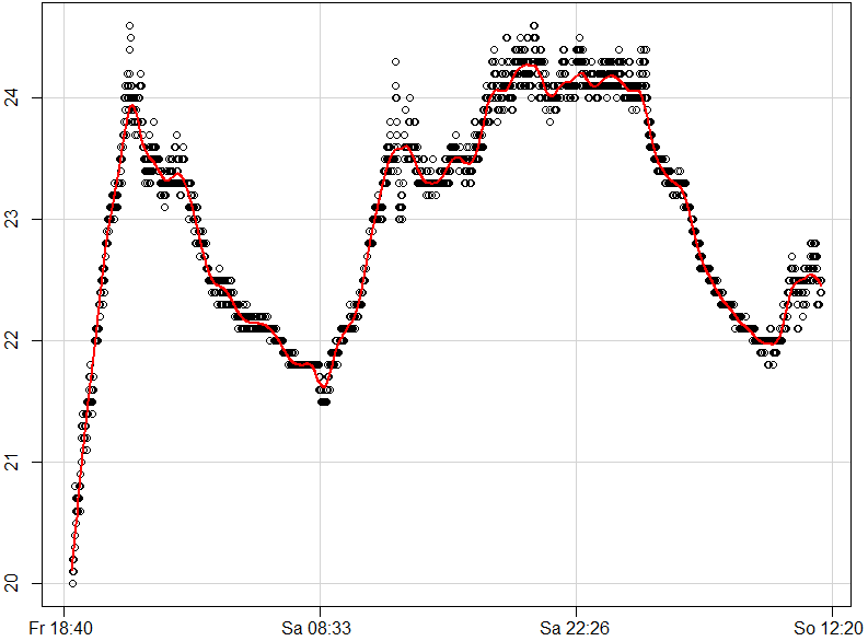 Ein minutengenauer Temperaturplot (in °C) über die komplette Lan! \o/